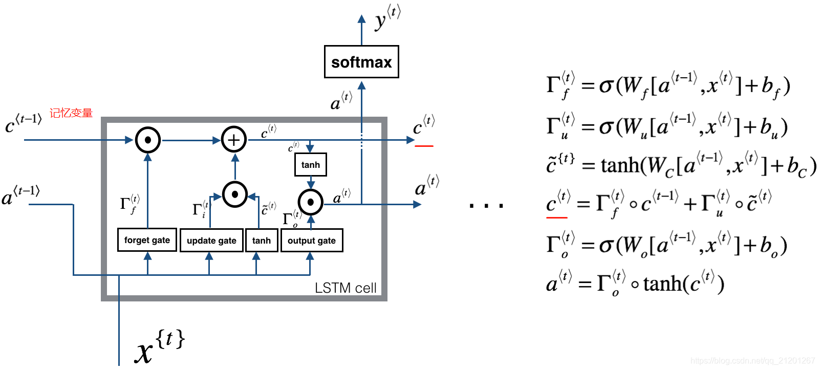c⟨t⟩=Γf⟨t⟩∗c⟨t−1⟩+Γu⟨t⟩∗c~⟨t⟩c^{\langle t \rangle} = \Gamma_f^{\langle t \rangle}* c^{\langle t-1 \rangle} + \Gamma_u^{\langle t \rangle} *\tilde{c}^{\langle t \rangle}c⟨t⟩=Γf⟨t⟩∗c⟨t−1⟩+Γu⟨t⟩∗c~⟨t⟩