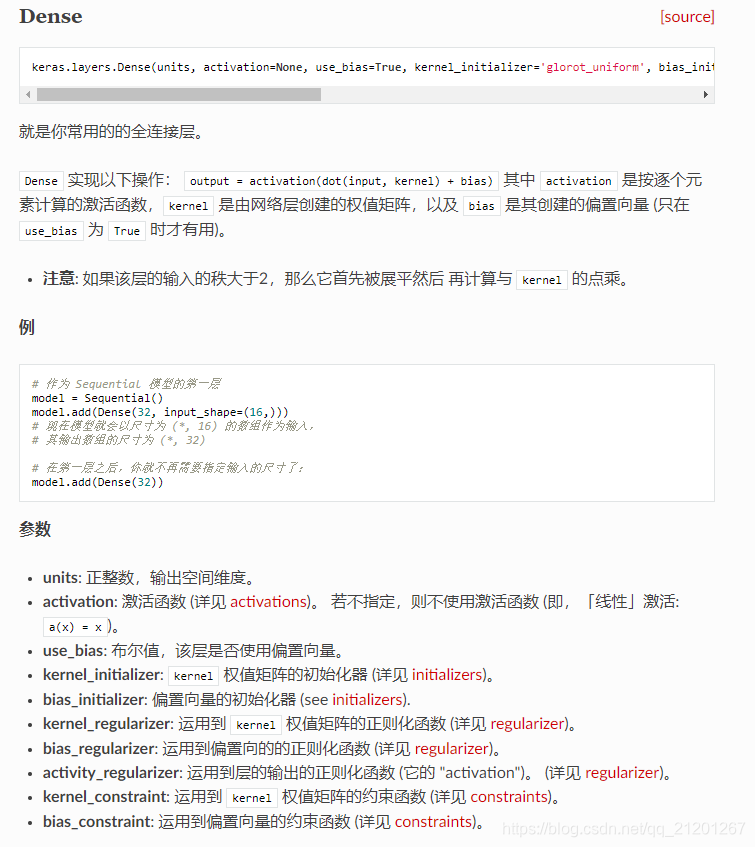 Dense 参考 https://keras.io/zh/layers/core/#dense