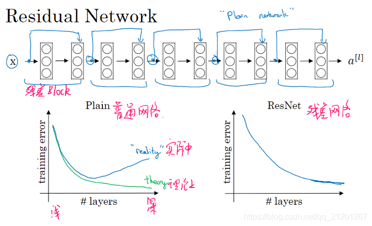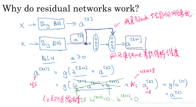 - 残差块学习恒等函数非常容易,你能确定网络性能不会受到影响,很多时候甚至可以提高效率,或者说至少不会降低网络的效率