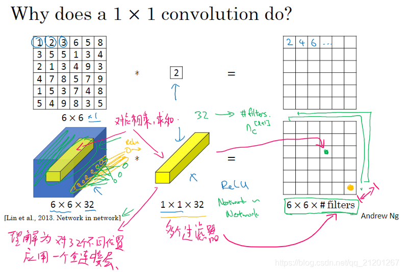 1×1卷积层 给神经网络添加了一个非线性函数,从而减少或保持输入层中的通道数量不变,也可以增加通道数量