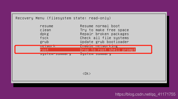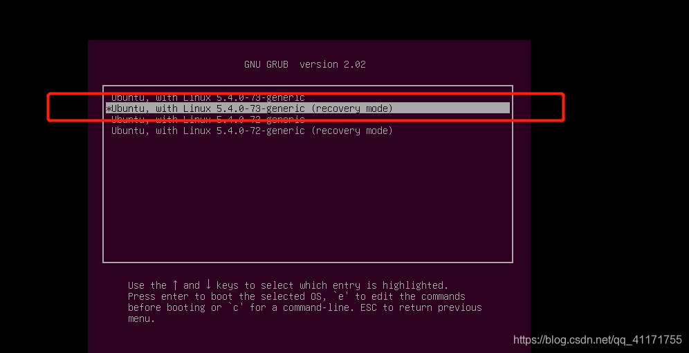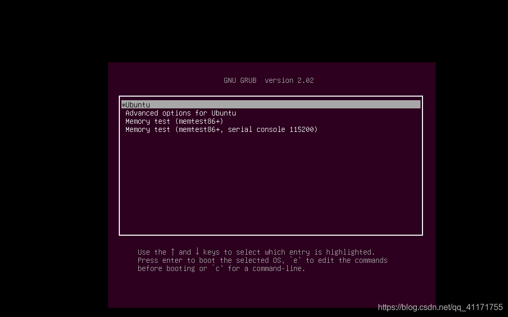 - 重启虚拟机,开机界面敲击shift键进入如下界面,选择 advanced options for ubantu