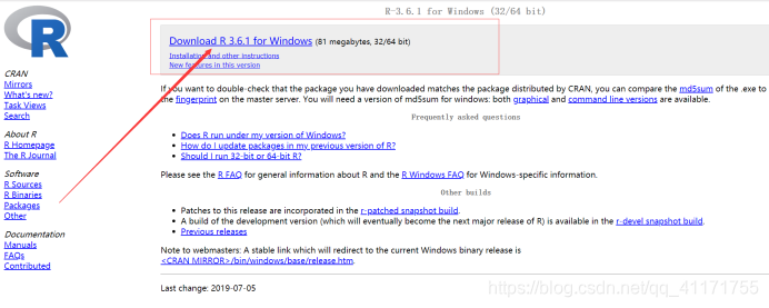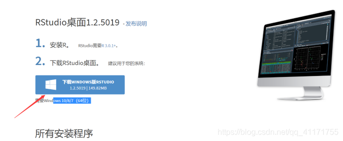 - 进入https://cran.rstudio.com/。下载如下安装工具