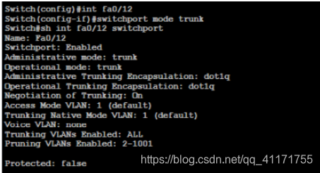 键入sh int fa0/12 switchport来展示12号接口的配置信息