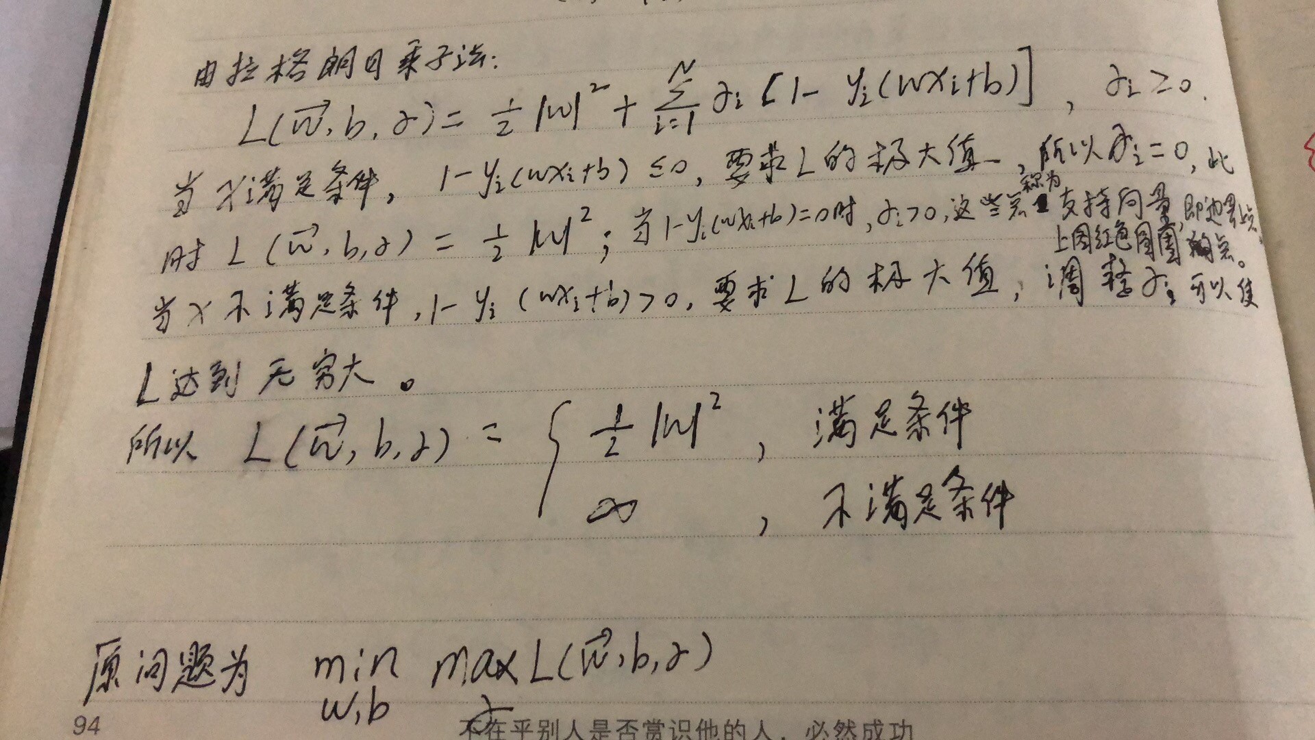 思想:寻找能够成功分开两类样本并且具有最大分类间隔的最优超平面。