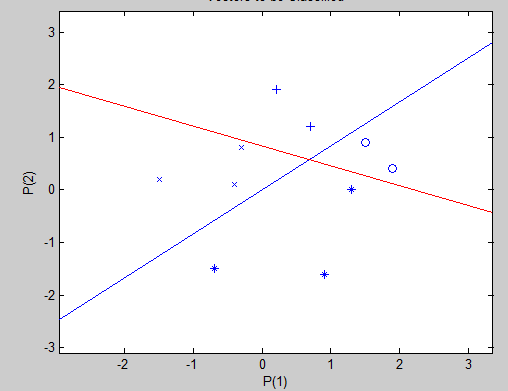 P= [0.1 0.7 0.8 0.8 1.0 0.3 0.0 -0.3 -0.5 -1.5; 1.2 1.8 1.6 0.6 0.8 0.5 0.2 0.8 -1.5 -1.3]; %给定训练样本数据