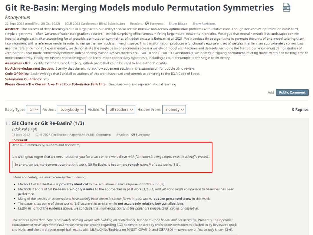 Sidak Pal Singh 的这篇评论从题目就开始质问:究竟是「Git Clone」还是「Git Re-Basin」?开篇更是直截了当地指出这篇工作是将过去的许多工作综合在一起“炒冷饭”: