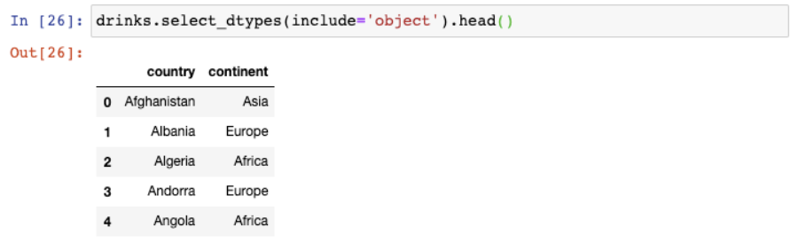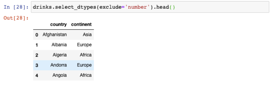 In [25]:drinks.select_dtypes(include='number').head()Out[25]:| beer_servings | spirit_servings | wine_servings | total_litres_of_pure_alcohol | |