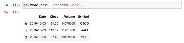 我们以生成器表达式用read_csv()函数来读取每个文件,并将结果传递给concat()函数,这会将单个的DataFrame按行来组合: