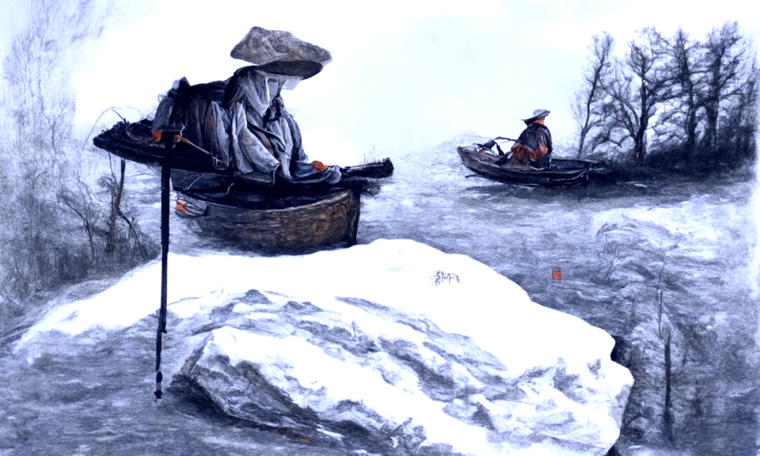 prompt:孤舟蓑笠翁,独钓寒江雪, 水粉画