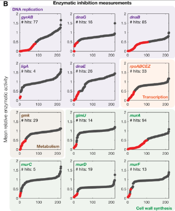 多年来,在大肠杆菌中进行的大量基因组敲除扫描的共识评分已经得出了 296 项基本蛋白质,所以,可以合理推断所有真正抑制生长的靶标蛋白质都可能在这些列表当中。