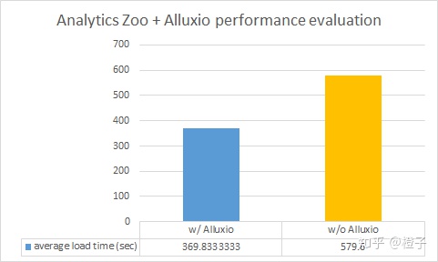 使用Alluxio和不使用Alluxio的平均加载时间分别为579秒和369秒。当Analytics Zoo使用Alluxio加载ImageNet训练和测试数据时,速度大约提高了1.5倍。注意,输入数据位于S3中计算的同一区域中。