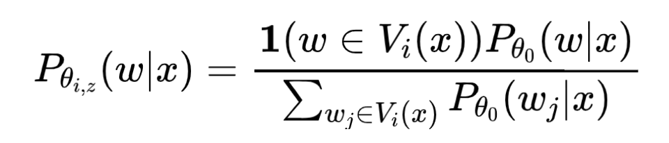 其中代表给定已生成的前缀(或者给定的prompt)x时,当前步骤允许生成的词表。P_theta(w|x)是预训练模型在当前步骤的原始概率。我们提出的通过限制解码对预训练模型归一化再与精调模型集成,这一简单的步骤有望应用于生成任务中更广泛的场景得到具有更强的泛化能力的生成模型。