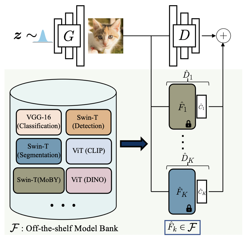 作者提出了Vision-aided GAN的结构,率先引入了预训练的模型辅助GAN训练并取得了新的SOTA,为之后的GAN网络训练提供了新的范式。