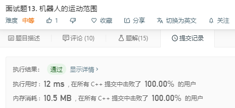 链接:https://leetcode-cn.com/problems/ji-qi-ren-de-yun-dong-fan-wei-lcof