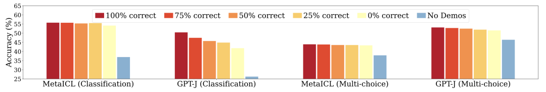 这篇文章的第一个结论是:in-context learning中,模型并没有学习输入和标签之间的对应关系。