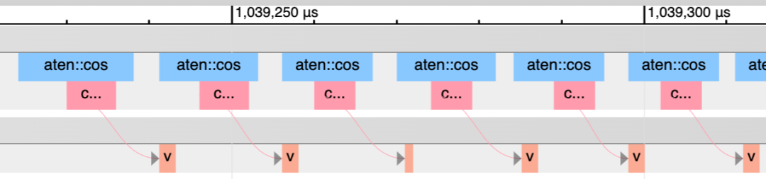 另一种方法是使用 PyTorch 分析器。如下图,粉红色块显示了 CPU 内核与 GPU 内核的匹配情况。