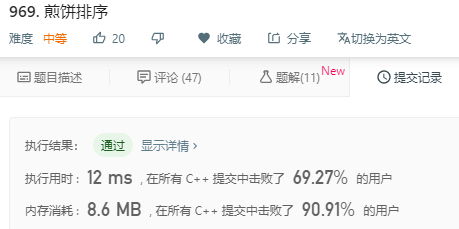 public:vector<int> pancakeSort(vector<int>& A) {int i,j = A.size()-1,k;vector<int> ans;while(j>=1){i = findmax(A,j);if(i != 0)//不在队首,翻2次,先翻到队首{ans.push_back(i+1);reverse(A.begin(), A.begin()+i+1);}ans.push_back(j+1);//在队首,直接翻到最后reverse(A.begin(), A.begin()+j+1);--j;}return ans;}int findmax(vector<int>& A, int &j){//找未排序的最大数的下标int m = INT_MIN, idx;for(int i=0; i<=j; ++i)if(A[i] > m){m = A[i];idx = i;}return idx;}