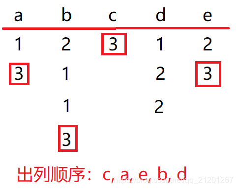 假设有5个人,报数3的出列,手动模拟如下