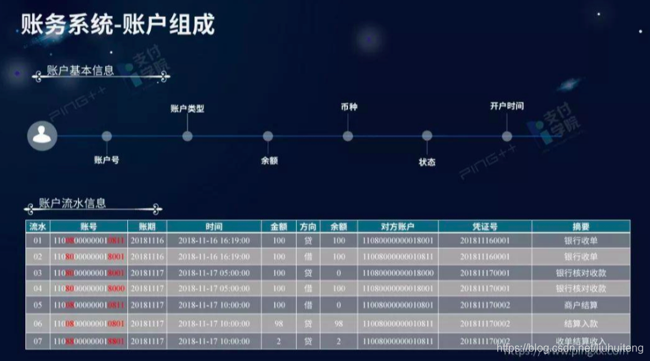 但是在做第三方支付的过程中,更多是参照于银行账户进行设计。每一笔流水需要:对手方是谁?