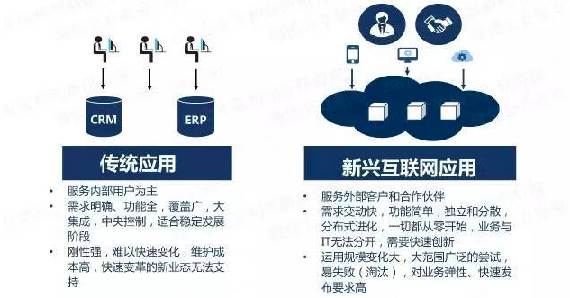 近年来我们大家都体会到了互联网、移动互联带来的好处,作为IT从业者,在生活中时刻感受互联网好处的同时,在工作中可能感受的却是来自自互联网的一些压力,那就是我们传统企业的IT建设也是迫切需要转型,需要面向外部客户,我们也需要应对外部环境的快速变化、需要快速创新,那么我们的IT架构也需要向互联网企业学习作出相应的改进,来支撑企业的数字化转型。