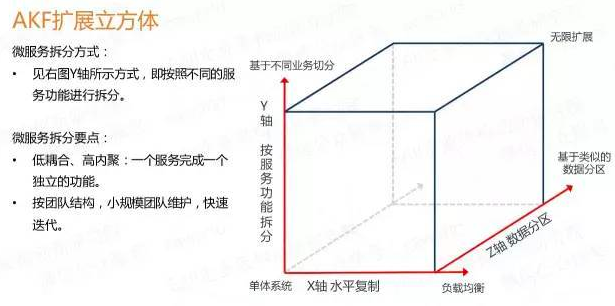 AKF扩展立方体(参考《The Art of Scalability》),是一个叫AKF的公司的技术专家抽象总结的应用扩展的三个维度。理论上按照这三个扩展模式,可以将一个单体系统,进行无限扩展。