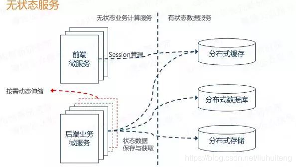 那么这个无状态服务原则并不是说在微服务架构里就不允许存在状态,表达的真实意思是要把有状态的业务服务改变为无状态的计算类服务,那么状态数据也就相应的迁移到对应的“有状态数据服务”中。