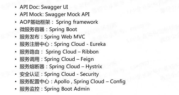 API管理契约文档、API模拟我们是集成了Swagger的工具链。微服务应用平台的基础就是SpringCloud,从容器框架到注册发现再到安全认证这些基础方案均采用了他的能力来支撑。以上是我们集成的一些开源框架和工具。