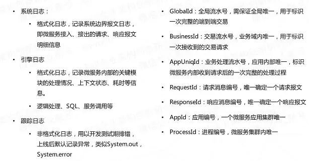 要想做到出了问题能够追根溯源,那么右边的这些流水号的设计也是非常重要的,日志与各种流水号配合,能够让我们快速定位问题发生的具体时间地点以及相关信息,能够快速还原业务交易全链路。对这些日志与流水的细节处理,对于系统运维问题定位有非常大的帮助,没有这些有用的日志内容,ELK日志收集套件搭建的再漂亮,收一对垃圾日志也是没用的。通常开源框架只是提供个框架有开发人员自由发挥,而设计一个平台则一定要考虑直接提供统一规范的基础能力。