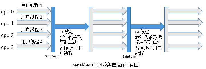 最基本、发展历史最久的收集器,这个收集器是一个采用复制算法的单线程的收集器,单线程一方面意味着它只会使用一个CPU或一条线程去完成垃圾收集工作,另一方面也意味着它进行垃圾收集时必须暂停其他线程的所有工作,直到它收集结束为止。后者意味着,在用户不可见的情况下要把用户正常工作的线程全部停掉,这对很多应用是难以接受的。不过实际上到目前为止,Serial收集器依然是虚拟机运行在Client模式下的默认新生代收集器,因为它简单而高效。用户桌面应用场景中,分配给虚拟机管理的内存一般来说不会很大,收集几十兆甚至一两百兆的新生代停顿时间在几十毫秒最多一百毫秒,只要不是频繁发生,这点停顿是完全可以接受的。