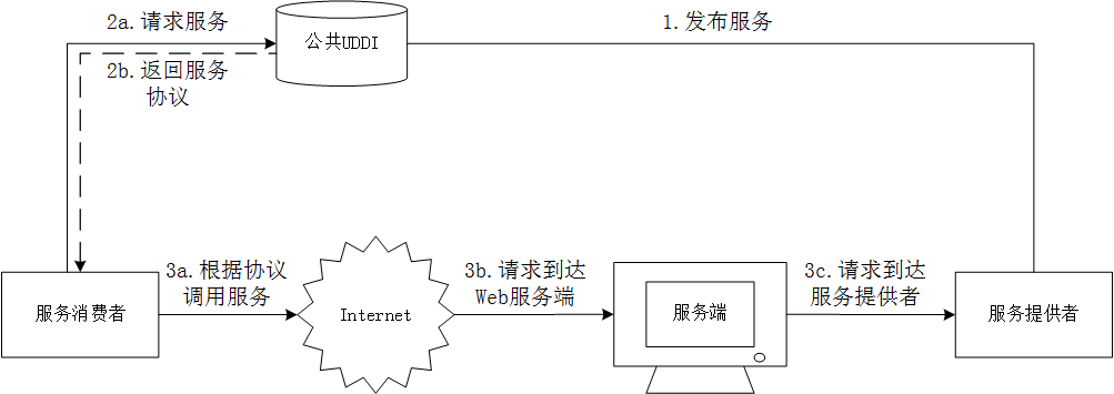 服务提供者:可网络寻址的实体,接受并执行服务使用者的请求