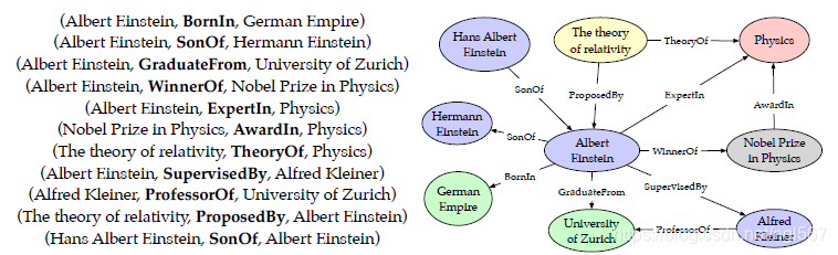整合人类知识是人工智能(AI)的研究方向之一。受解决人类遇到的问题的启发,知识表示和推理是为智能系统表示知识而取得解决复杂任务的能力。近年来,知识图谱作为结构化人类知识的一种形式已经引起了学术界和工业界的极大关注。知识图谱是事实的结构化表示,由实体,关系和语义描述组成。实体可以是现实世界中的对象和抽象概念,关系表示实体之间的关系,实体的语义描述及其关系包含具有明确定义含义的类型和属性。属性图或属性图被广泛使用,其中节点和关系具有属性或属性。