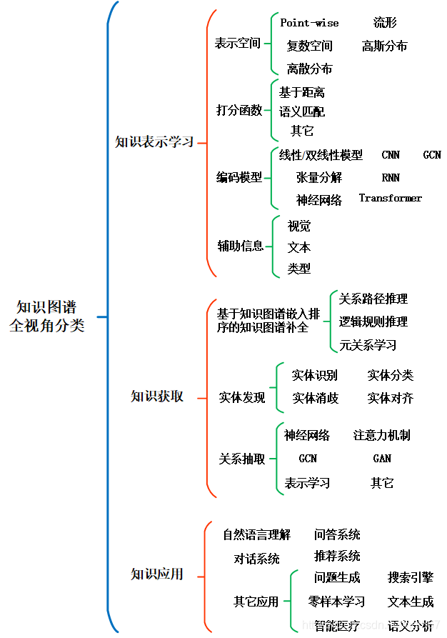 本文对知识图谱的整体分类和梳理如图所示:
