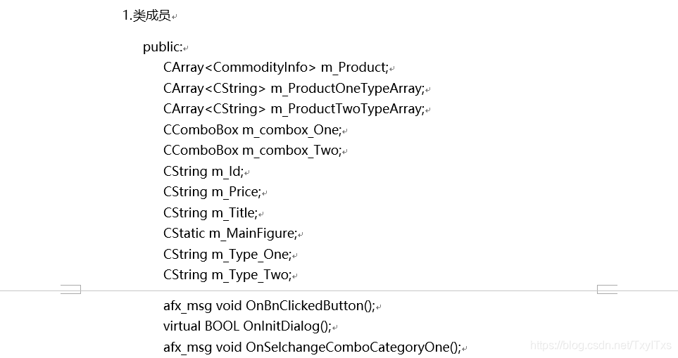 {CDialogEx::OnInitDialog();// TODO: 在此添加额外的初始化m_ProductOneTypeArray.Add(_T("现代家具"));m_ProductOneTypeArray.Add(_T("后现在家具"));m_ProductOneTypeArray.Add(_T("欧式古典家具"));m_ProductOneTypeArray.Add(_T("美式家具"));m_ProductOneTypeArray.Add(_T("中式古典家具"));m_ProductOneTypeArray.Add(_T("新古典家具"));m_ProductOneTypeArray.Add(_T("新装饰家具"));m_ProductTwoTypeArray.Add(_T("沙发"));m_ProductTwoTypeArray.Add(_T("茶几"));m_ProductTwoTypeArray.Add(_T("边几(角几)"));m_ProductTwoTypeArray.Add(_T("床头柜"));m_ProductTwoTypeArray.Add(_T("化妆台"));m_ProductTwoTypeArray.Add(_T("妆凳"));m_ProductTwoTypeArray.Add(_T("衣柜"));m_ProductTwoTypeArray.Add(_T("床尾凳"));m_ProductTwoTypeArray.Add(_T("穿衣镜"));for (UINT i = 0; i < m_ProductOneTypeArray.GetSize(); i++){m_combox_One.InsertString(i , m_ProductOneTypeArray[i]);}for (UINT i = 0; i < m_ProductTwoTypeArray.GetSize(); i++){m_combox_Two.InsertString(i, m_ProductTwoTypeArray[i]);}return TRUE; // return TRUE unless you set the focus to a control