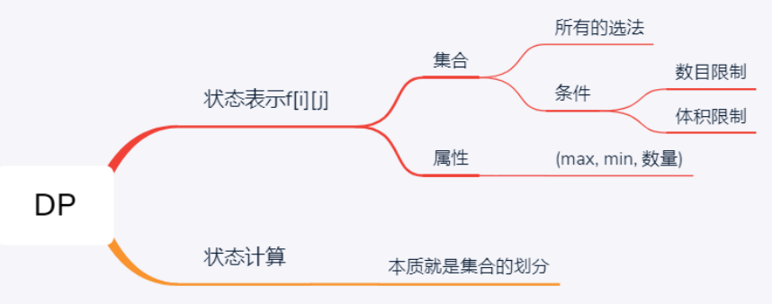f[i-1][j-v[i]]+w[i]:选第i个物品的集合,但是直接求不容易求所在集合的属性,先将第i个物品的体积减去,求剩下集合中选法的最大值.