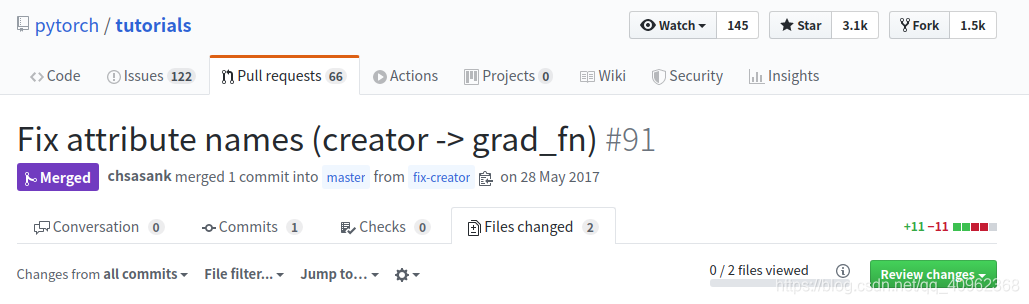 github上修改提交:https://github.com/pytorch/tutorials/pull/91/files