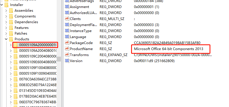 - PS:如何知道每个子文件夹和哪个软件有关?主要看ProductName这个参数。举个例子,例如下面这个子文件夹是和office有关的