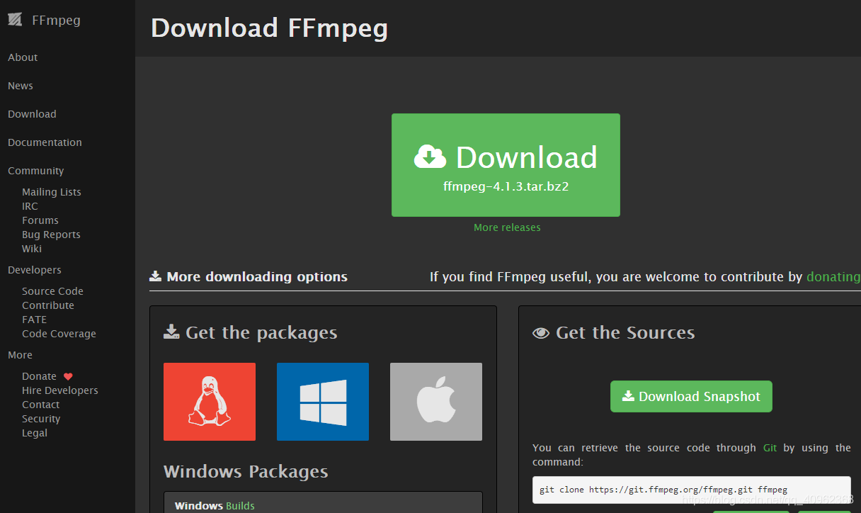 去官网下载FFmpeg,根据自身电脑版本下载相应安装包