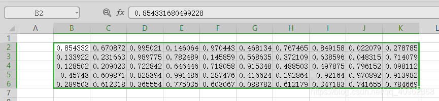 例6、把一个5x10矩阵写到Excel文件data5.xls表单Sheet2中B2开始的域中。