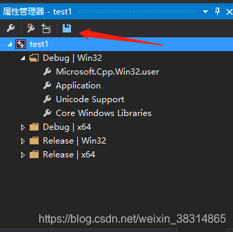 新建好工程之后,接着点击“视图”——>"其他窗口"——>"属性管理器",在多出的属性管理器窗口中双击“Microsoft.Cpp.Win32.user”