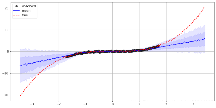 已知在一个回归问题中,输入向量是x,通过多次试验得到了输出的均值和标准差分别为y_mean和y_std,y_mean和y_std均为向量。现需画出一倍方差和二倍方差覆盖的区域,代码如下:
