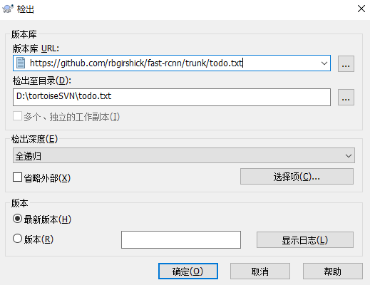 首先下载tortoiseSVN,安装好之后打开github项目的地址,例如https://github.com/rbgirshick/fast-rcnn