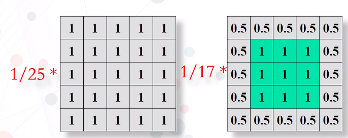 待处理像素点的值,等于其周围相邻像素的全体像素的加权平均值。