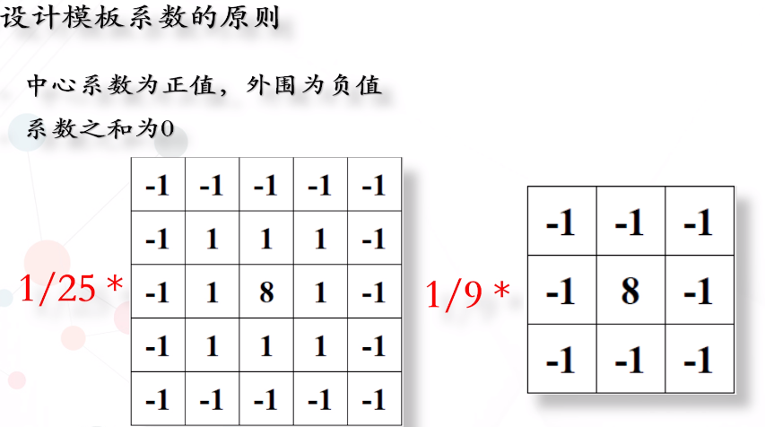 设计模板系数的原则:1)大于0;2)都选1,或中间选1,周围选0.5 3)通过求均值,解决超出灰度范围的问题。