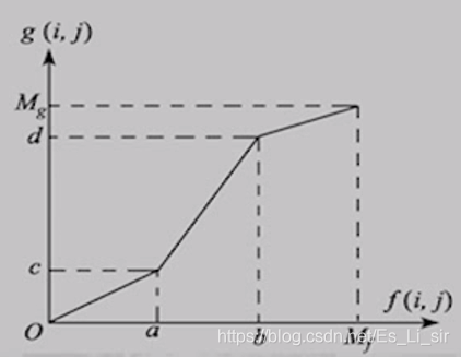 设原图像f(x,y)在[0,],感兴趣目标的灰度范围在[a,b],要把这个灰度范围拉伸到[c,d],可以得到对应的分段线性变换表达式: