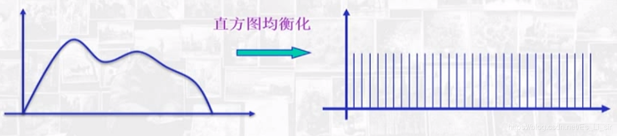 直方图均衡化:将原图像通过某种变化,得到一幅灰度直方图均匀分布的新图像。