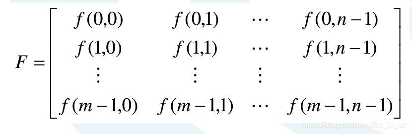 以一幅数字图像F左上角像素中心为坐标原点,一幅的数字图像用矩阵表示为: