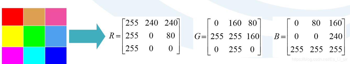3)彩色图像:是指每个像素由R、G、B分量构成的图像,其中R、G、B是由不同的灰度级来描述。3字节(24位)来表示一个像素。