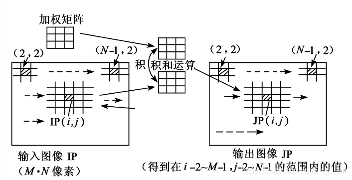 概念:对输入图像IP(i,j)处理时,某一输出像素JP(i,j)值由输入图像像素(i,j)及其领域N(IP(i,j))中的像素值确定。这种处理称为局部处理。