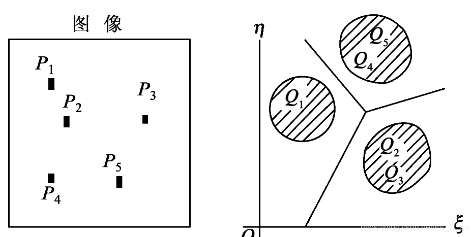 2.特征空间:把从图像提取的m个特征量y1,y2,...ym,用m维的向量Y={y1,y2,...}t表示称为特征向量。另外,对应于各特征量的m维空间称为特征空间。