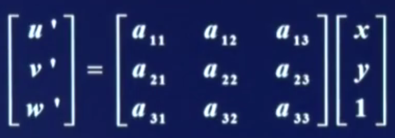 透视变换也是一种平面映射,称为透视变换,也称为投影映射,其表达式为: